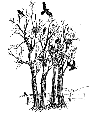 Then tragedy. Violent wind, making the ash keys dance into the air like the crotchets and triplets of a musical melody line penned by nature, levered the nest out too: a finale to the score; the base drum, booming to earth. It landed in the night, the reverberations still felt the next day as the baleful drawn out cries of the rooks had vanished. With their home fallen, they moved on, seemingly without sentiment, their rebuilding must commence, this time elsewhere.